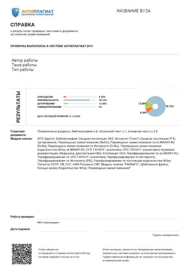 Ниже строка дата проверки, при выгрузке она тоже подтвердит, что антиплагиат Онлайн бесплатно со справкой без регистрации, настоящая и нет никаких оснований сомневаться. Удивительный метод QR – код, он позволяет (смотрите скан антиплагиат.РУ справка о проверке). Любой гаджет, смартфон распознает QR – код и приведёт к сайту, откуда можно узнать, как скачать справку антиплагиат.РУ. На увиденном сайте запросто можно понять, убедиться в подлинности антиплагиат справка о результатах проверки на всевозможные модули проверки. На том же сайте легко найти ссылку на отчёт, скачать наш оригинальный документ.